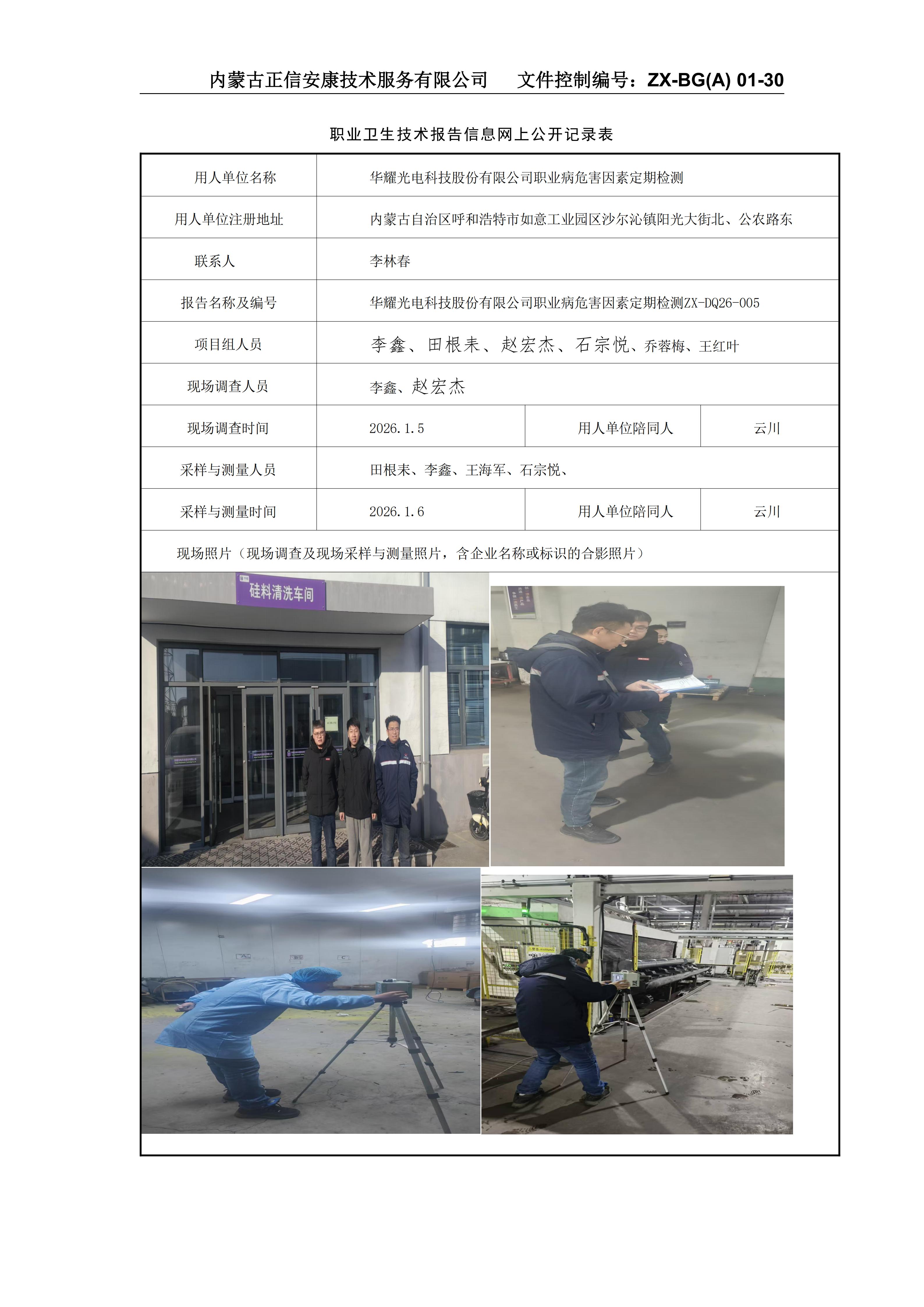 華耀光電科技股份有限公司職業(yè)病危害因素定期檢測(cè)